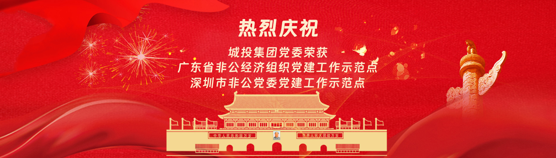 在上級黨委的正確領導下,在城投集團的大力支持下,集團黨委緊緊圍繞企業(yè)發(fā)展戰(zhàn)略,將黨建引領核心貫穿始終,以“五心”工程(即思政建設“核心”工程、經營發(fā)展“中心”工程、企業(yè)文化“向心”工程、黨建品牌“匠心”工程、服務基層“愛心”工程)為抓手,大膽探索,勇于突破和創(chuàng)新,不斷形成城投黨建特色,有效輸出城投實踐經驗,充分發(fā)揮“紅色引擎”作用,先后獲得“深圳市非公黨委黨建工作示范點”、“深圳市兩新組織黨建工作示范點”、“深圳市文明單位”、“深圳市先進基層黨組織”、“廣東省非公有制經濟領域黨建工作示范點”等榮譽稱號。